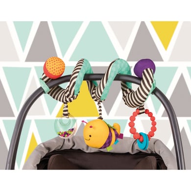 Die gestreifte Kinderwagenkette im Spiral-Design mit Rassel-, Beiß- und Quietschfunktion ist aus weichem Textil gefertigt und ideal für eine Trage geeignet. Die uüßen Accessoires an der Kette ziehen die Aufmerksamkeit auf sich und unterhalten das Kind unterwegs. Inhalt: Kinderwagenkette Größe Produkt (cm): 22 x 21 – 128 (ausziebar) x 11 Größe Verpackung (cm): 16 x 30,5 x 6 Sensorischer Spaß für Neugeborene Vielseitig einsetzbar: Kann am Kinderwagen, Kinderbett oder Autositz befestigt werden Enthält: drei sensorische Hängespielzeuge Anregende Texturen, leuchtende Farben und sanfte Geräusche sind perfekt für die Kleinen Überzeugt durch hohe Qualität und Langlebigkeit