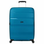 Die Kofferkollektion Bon Air DLX von American Tourister ist aus Polypropylen im Spritzgussverfahren gefertigt, so dass die Trolleys keinen zusätzlichen Rahmen benötigen. Dennoch sind sie sehr robust und bruchfest. Dank der leuchtenden Farben fallen die Koffer auf dem Kofferband gleich ins Auge. – wird mit Reißverschluss geschlossen – geräumiges Innenleben mit Packgurt und Reißverschluss-Trennwand – Stauraumvolumen durch Reißverschluss erweiterbar auf 104 Liter – ausziehbares Teleskopgestänge – 4 leichtgängige Doppelrollen – TSA-Schloss – Tragegriff seitlich Abmessung HxBxT in cm: 75 x 53 x 33 Gewicht in kg: 4.2 Volumen in Liter: 104 Serie: Air Material: Polypropylen Gepäckart: Hartgepäck